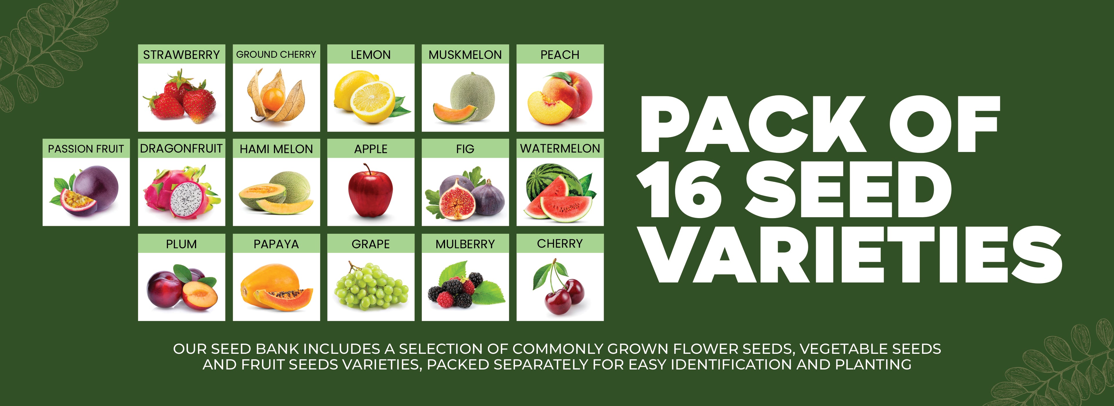 Banco de Semillas de Frutas Todo en Uno - 16 Variedades de Semillas